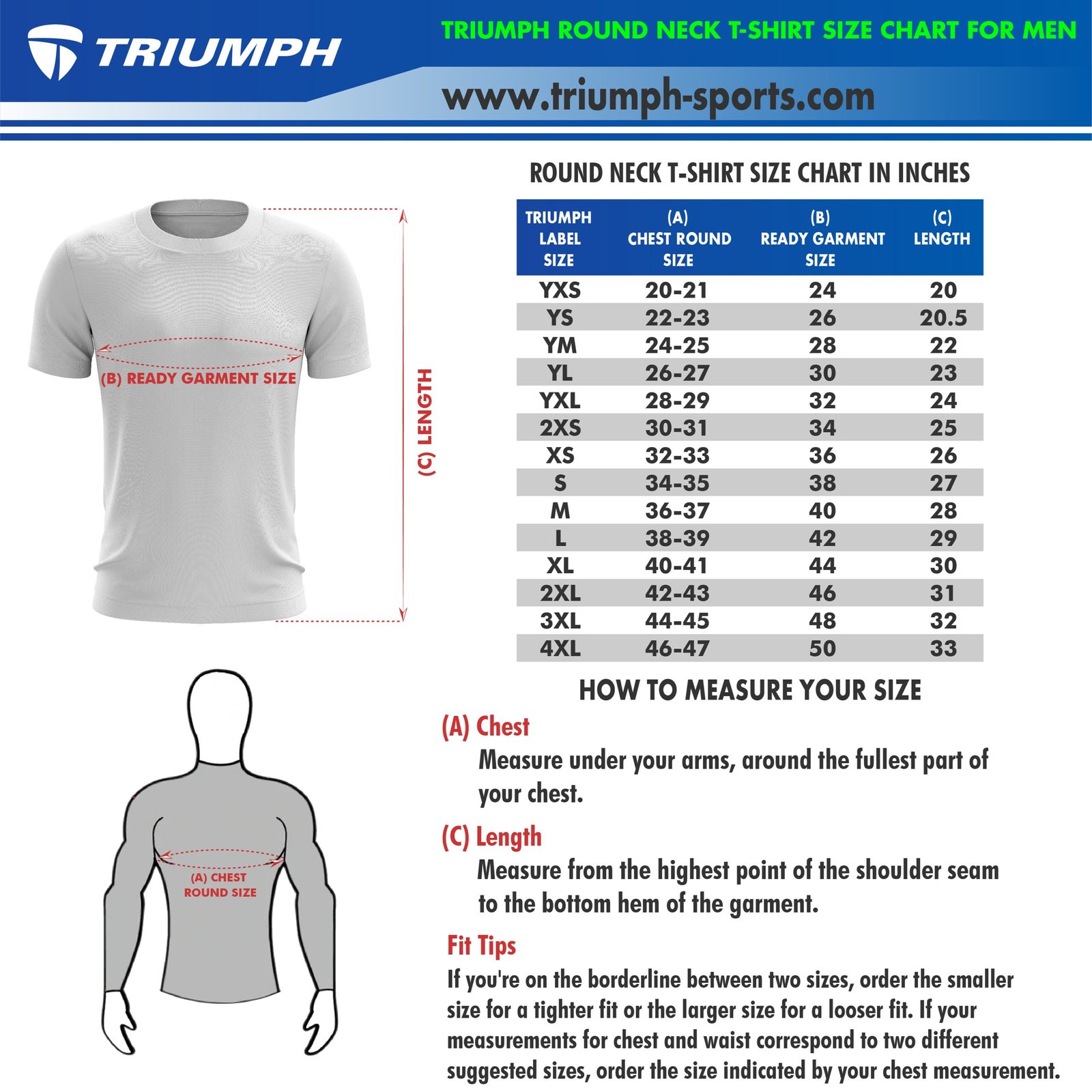 Round Neck T-Shirt Size Chart